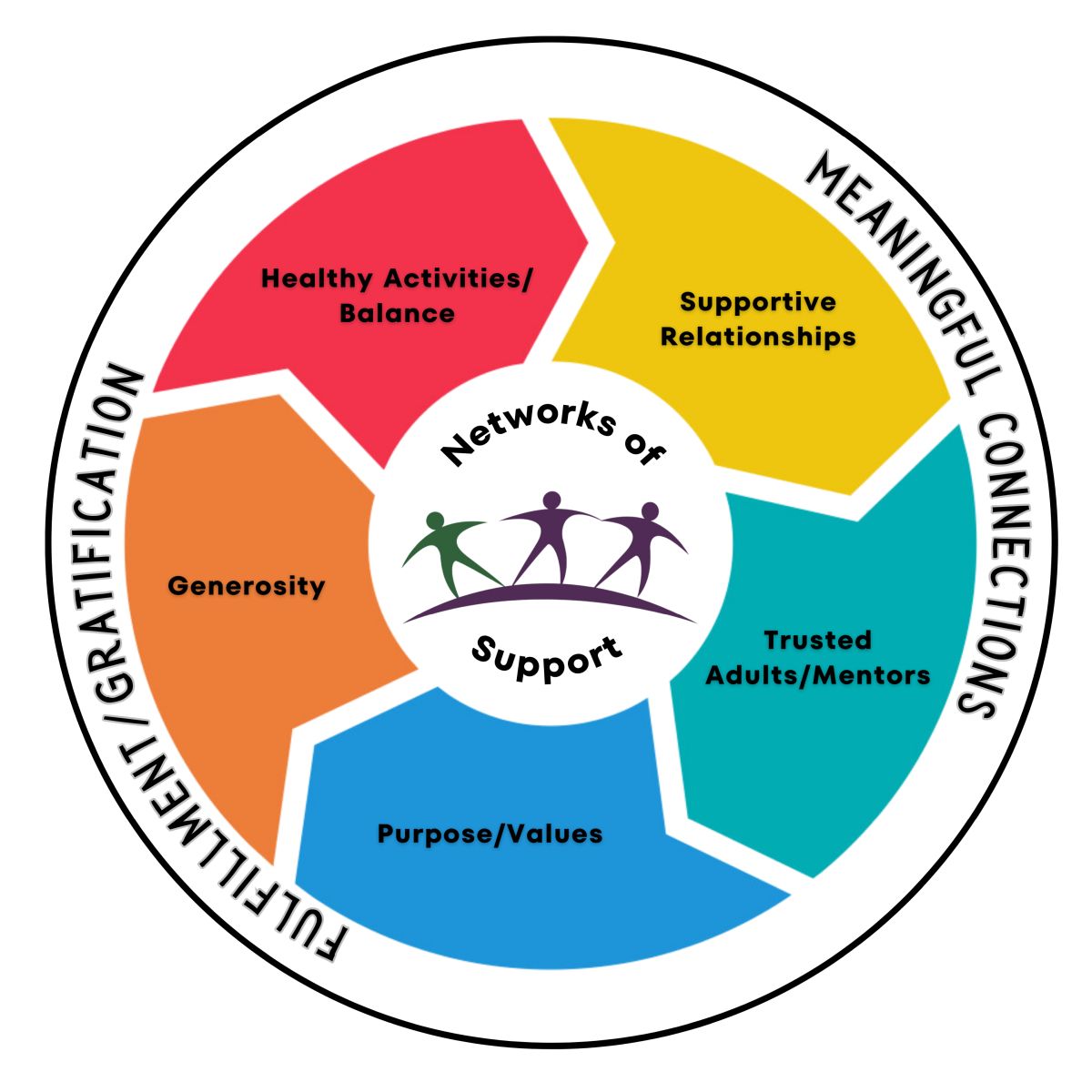 Individual Strengths and Protective Core Strengths. Individuals will build their abilities and confidence in utilizing healthy, adaptive, skills to thrive in their day-to-day environments, strengthen their social bonds, experience well-being, mange times of stress and transition, and experience academic/professional success. Groups learning together will develop the skills needed to grow and sustain these five core strengths and will develop connections and healthy expectations.